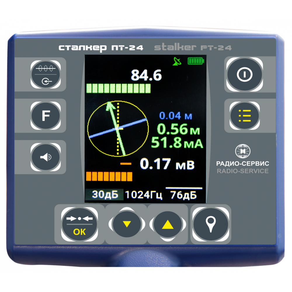 - трассоискатель Сталкер 80-24 автоматически отображет глубину и силу тока (даже в пассивных режимах);